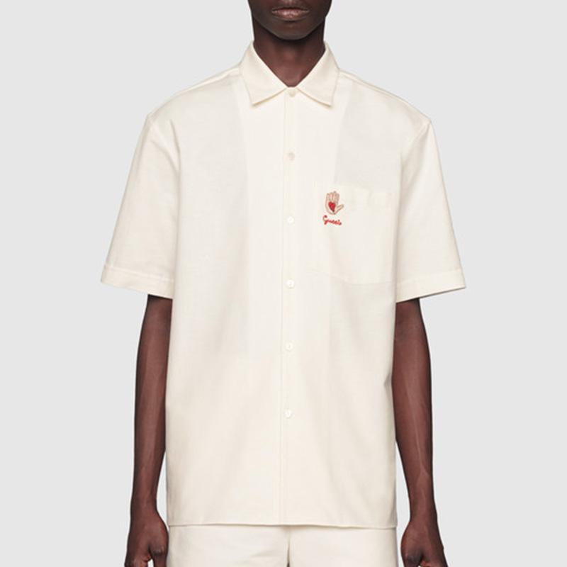 【包邮包税】GUCCI/古驰  古琦男装 男士米白色棉质时尚春夏保龄球衫短袖衬衫 649711 ZAGIS 9799