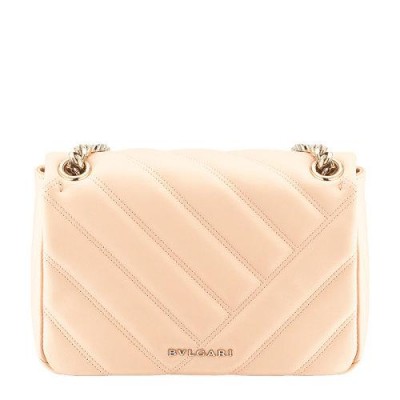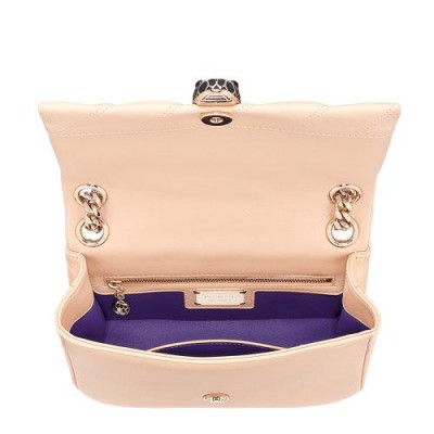BVLGARI/寶格麗SERPENTI CABOCHON系列女士蜜桃色絎縫小牛皮淺金鍍金黃銅黑白珐琅經典蛇首扣單肩包斜挎包鏈條包女包290612
