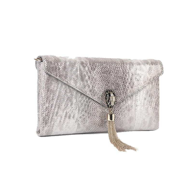 首頁 > 箱包配飾 > 寶格麗 > 【包郵包稅】BVLGARI/寶格麗寶格麗BVLGARI 21春夏女士深銀灰色BVLGARI COCKTAIL系列蛇頭搭扣流蘇手拿包