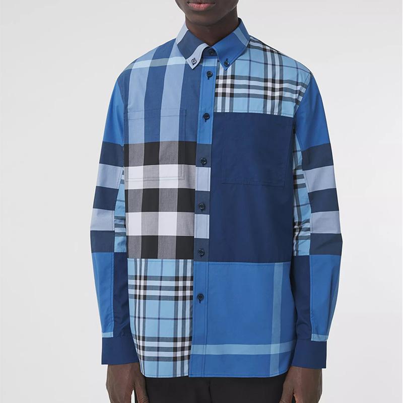 首頁 > 男裝 > 博柏利 > 【包郵包稅】BURBERRY/博柏利巴寶莉男裝男士亮鈷色棉質時尚格紋方領長袖襯衫80386551