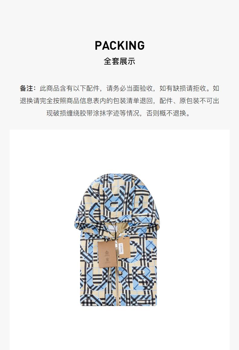 BURBERRY/博柏利男士夾克藍色尼龍徽標拼Vintage格紋連帽外套8038770