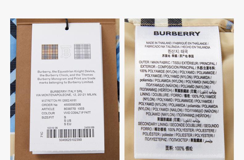 首頁 > 男裝 > 博柏利 > BURBERRY/博柏利男士夾克藍色尼龍徽標拼Vintage格紋連帽外套8038770