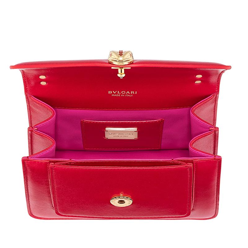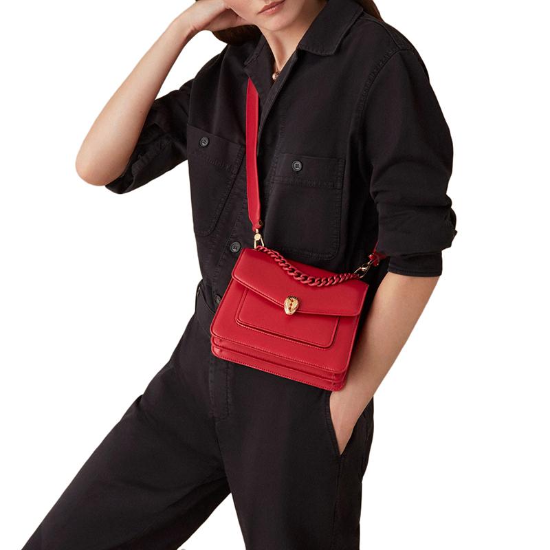 【包稅】預售2周貨BVLGARI/寶格麗2021春夏新款SERPENTI FOREVER系列女士小號紅色納帕皮革金色黃銅紅玉髓瑪瑙扣單肩斜挎包290763