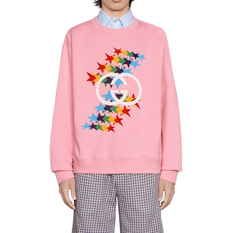‎【包稅】GUCCI/古馳21年早秋新款Opening系列男士粉色發光星星GG棉質運動衫626990XJDNK5904
