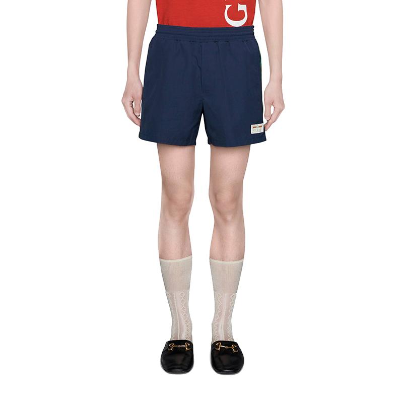 【包稅】GUCCI/古馳21年春夏新款男士藍色GG提花防水尼龍側條紋短褲599585XHAB74728