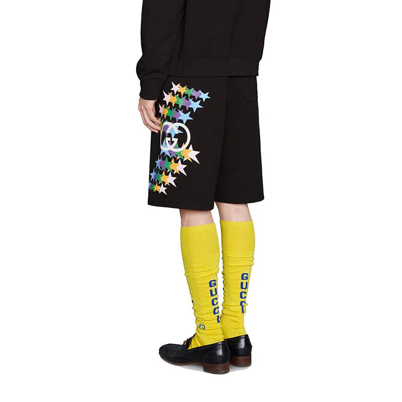 【包稅】預訂款1-2周GUCCI/古馳21年早秋新款Opening系列男士黑色發光的GG星星印花棉質短褲663249XJDNK1082