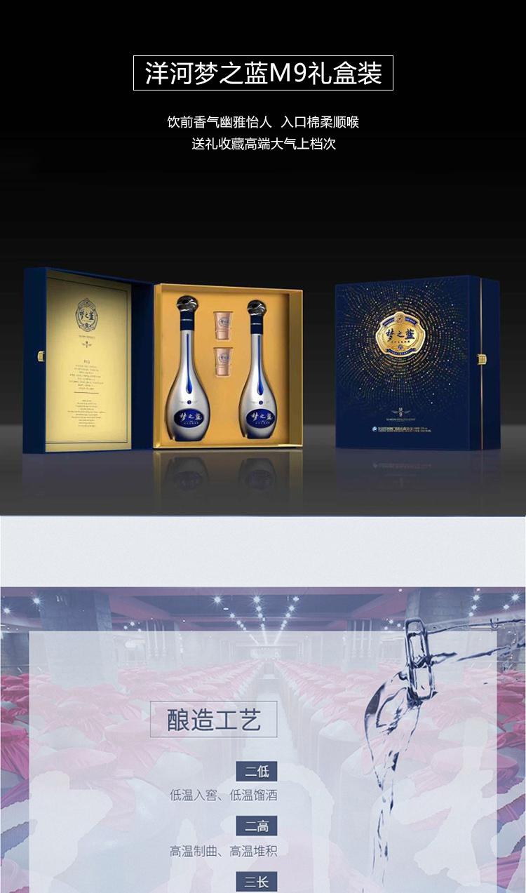 洋河蓝色经典 梦之蓝M9礼盒-52度500ml*2瓶礼盒装 浓香型白酒洋河蓝色经典 梦之蓝M9礼盒-52度500ml*2瓶礼盒装 浓香型白酒