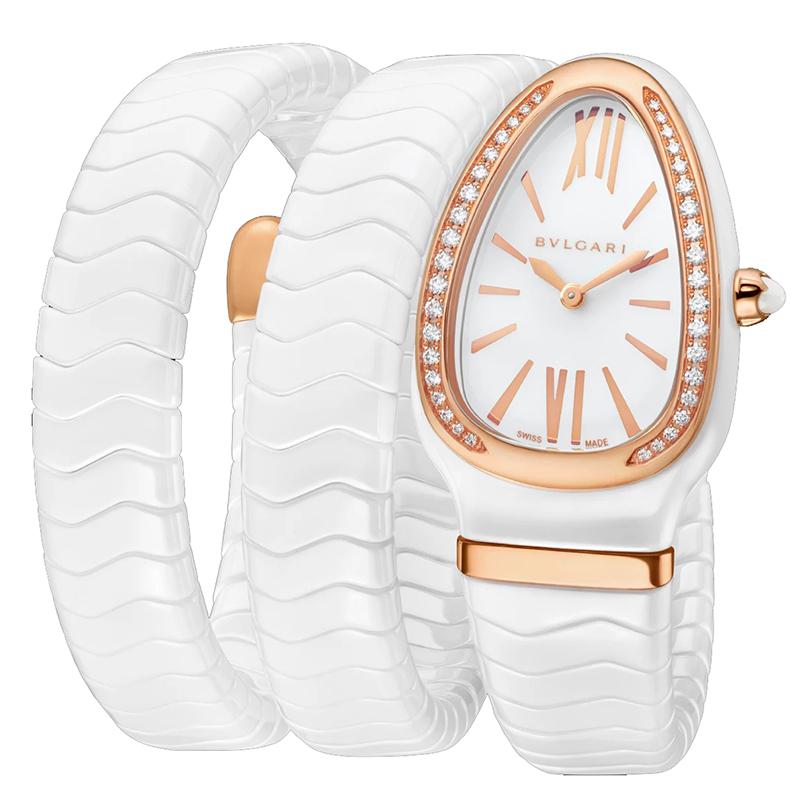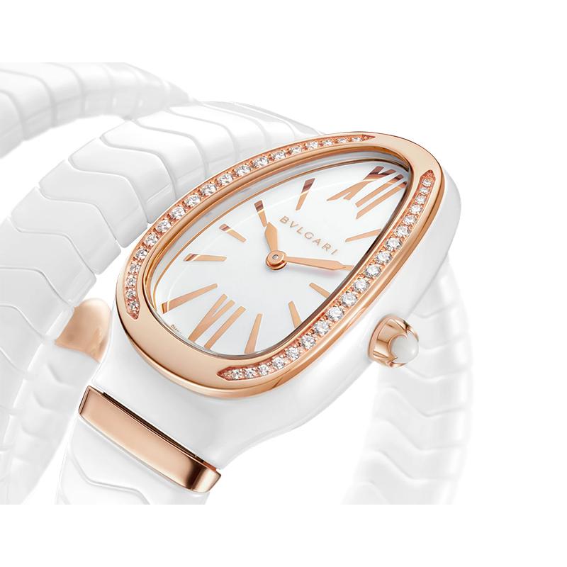 首頁 > 箱包配飾 > 寶格麗 > 【包稅】預定2-3周BVLGARI/寶格麗白色陶瓷錶殼鑲有鑽石的18K金玫瑰金表圈和雙螺旋錶鏈白色上漆和拋光錶盤SERPENTI SPIGA石英手錶35毫米102886