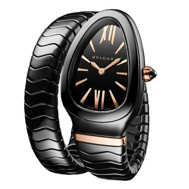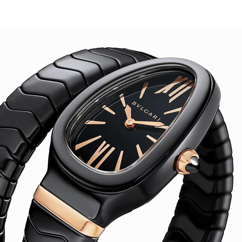 【包稅】預定2-3周BVLGARI/寶格麗黑色陶瓷錶殼和螺旋錶帶鑲有18K金玫瑰金元素黑色烤漆錶盤SERPENTI SPIGA石英手錶35毫米102734