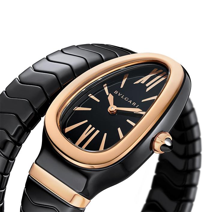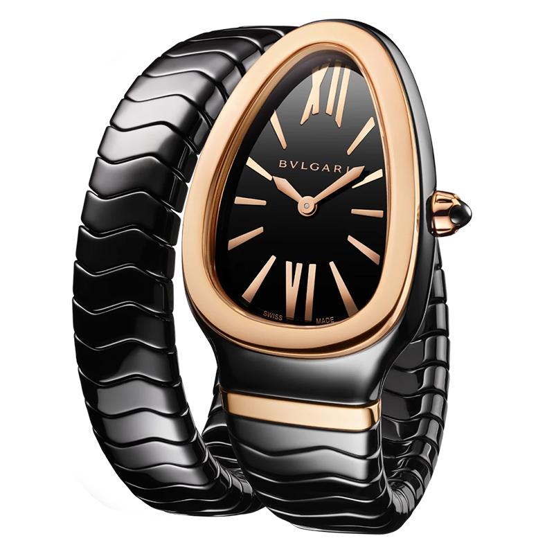 【包税】预定2-3周 BVLGARI/宝格丽 黑色陶瓷表壳和单螺旋表带 18K金玫瑰金表圈 黑色烤漆表盘 SERPENTI SPIGA石英手表 35毫米102735