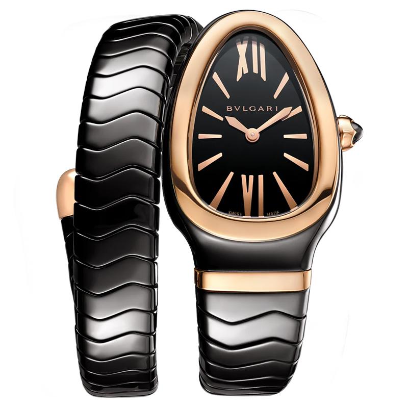 【包稅】預定2-3周BVLGARI/寶格麗黑色陶瓷錶殼和單螺旋錶帶18K金玫瑰金表圈黑色烤漆錶盤SERPENTI SPIGA石英手錶35毫米102735
