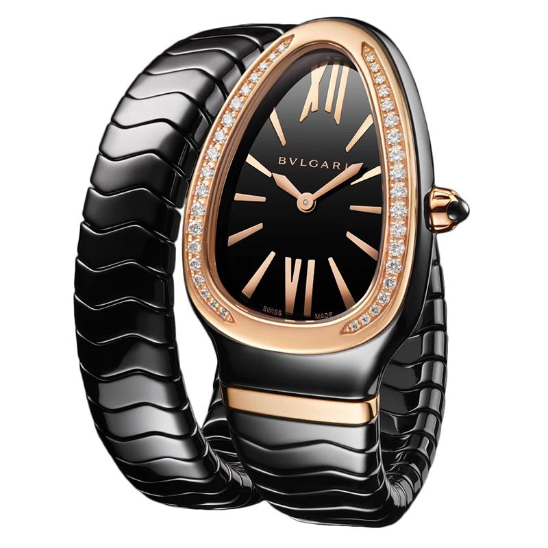 首頁 > 箱包配飾 > 寶格麗 > 【包稅】預定2-3周BVLGARI/寶格麗黑色陶瓷錶殼18K金玫瑰金表圈鑲有明亮式切割鑽石和黑色陶瓷螺旋錶鏈黑色烤漆錶盤SERPENTI SPIGA石英手錶35毫米102532