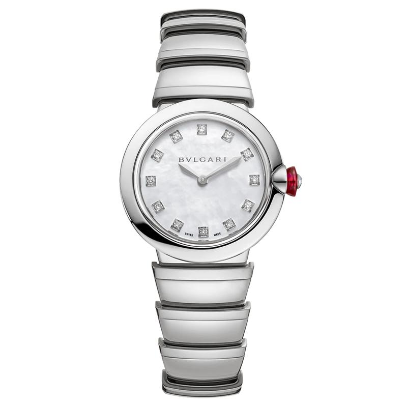 【包稅】預定2-3周BVLGARI/寶格麗精鋼錶殼和錶鏈白色珍珠母貝錶盤和鑲有鑽石的時標LVCEA石英手錶28毫米102196
