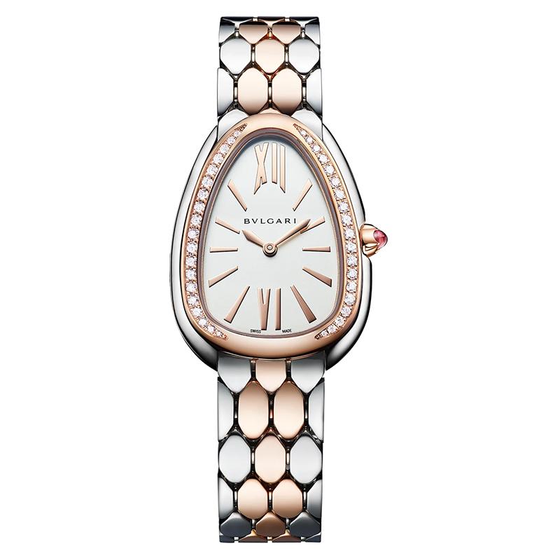 【包税】预定2-3周 BVLGARI/宝格丽 不锈钢表壳 镶有钻石的18K金玫瑰金表圈白色表盘和表链子 Serpenti Seduttori石英手表 33毫米103274
