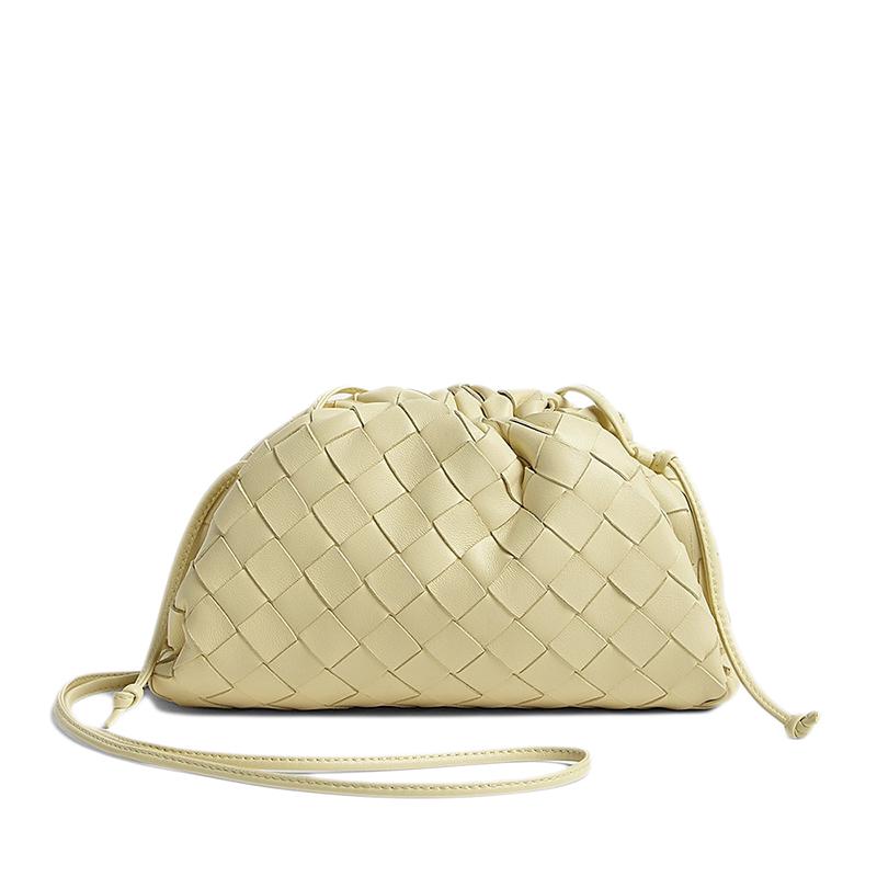 【包稅】Bottega Veneta/葆蝶家21春夏新款POUCH系列女士迷你霜淇淋色小羊皮編織手拿雲朵包585852VCPP17450