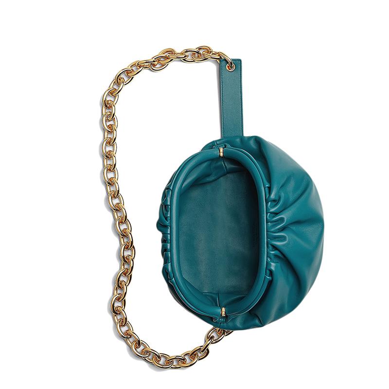 首頁 > 箱包配飾 > 葆蝶家 > 【包稅】Bottega Veneta/葆蝶家21春夏新款CHAIN POUCH系列女士野鴨綠色小牛皮金色鏈條腰包手拿斜挎包651445VCP413118