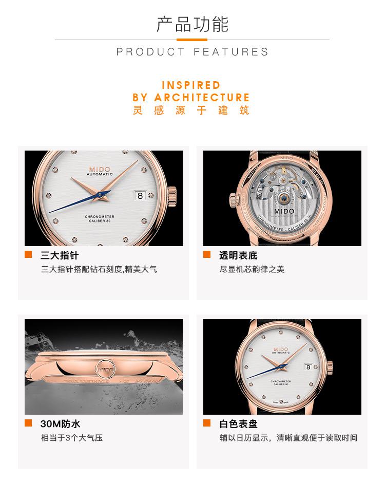 mido/美度 贝伦赛丽系列女士美度 Caliber硅游丝天文台认证自动机械腕表M027.208.36.036.00