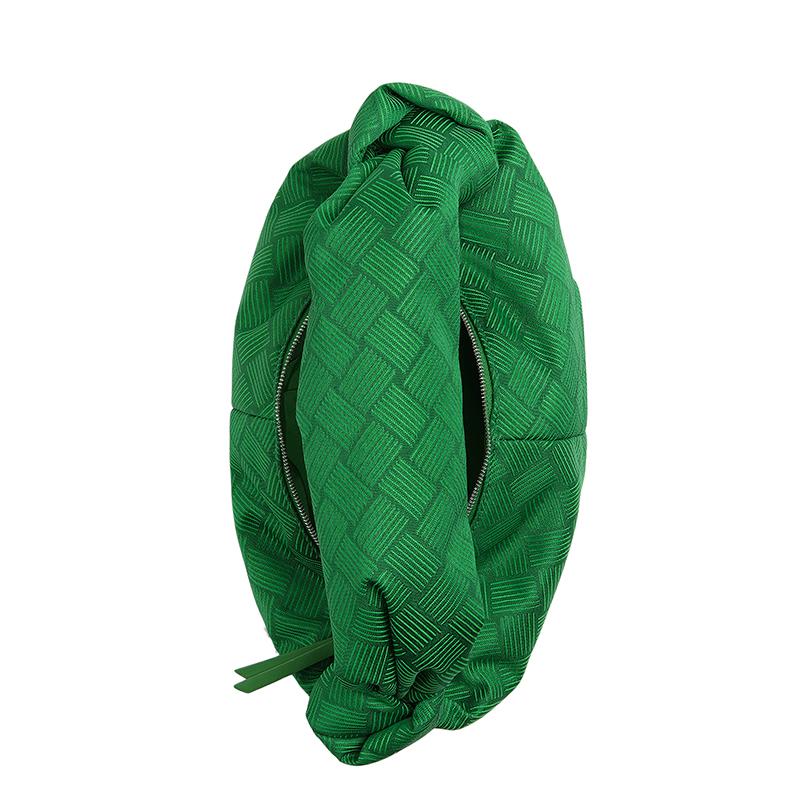 【包稅】Bottega Veneta/葆蝶家21新款DOUBLE KNOT系列女士鸚鵡綠色織物牛皮革拉鍊打結手提包658049V0T413711