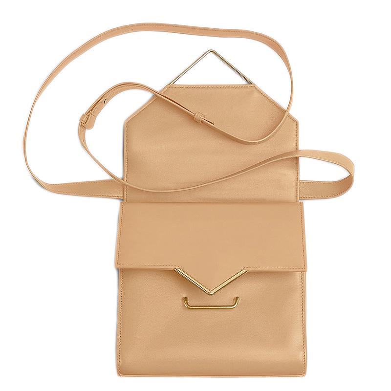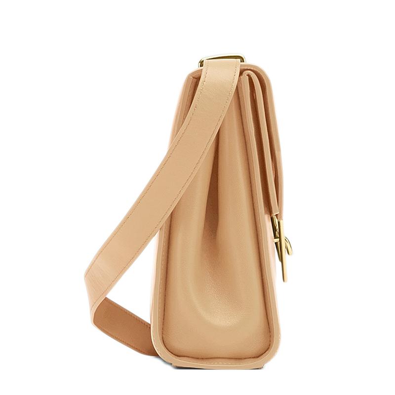 【包税】Bottega Veneta/葆蝶家 21春夏新款THE CLIP系列 女士杏仁色牛皮小羊皮翻盖三角形金属扣方形单肩斜挎包652391V0I422700