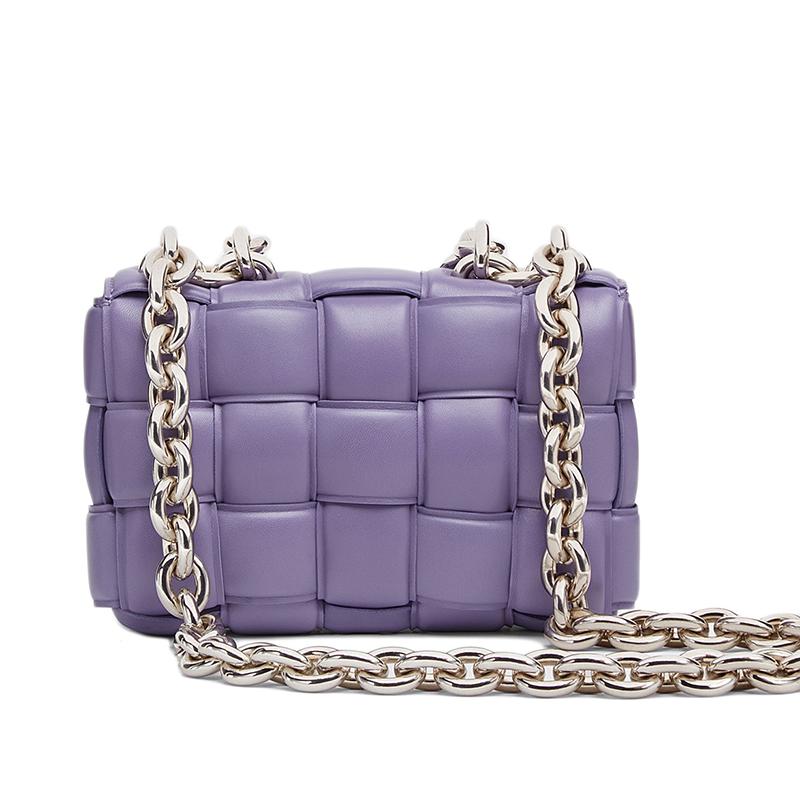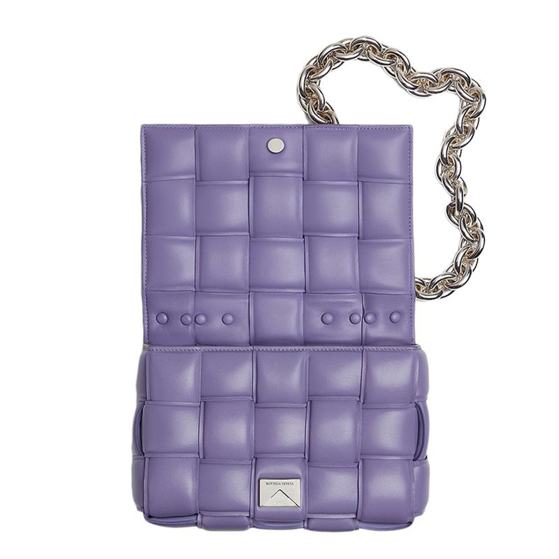 【包税】Bottega Veneta/葆蝶家 21早春新款CHAIN CASSETTE系列 女士薰衣草紫色小羊皮编织链条单肩斜挎豆腐包631421VBWZ05130