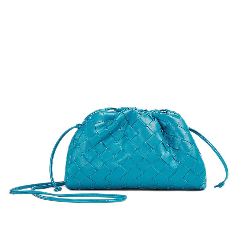 【包稅】Bottega Veneta/葆蝶家21春夏新款POUCH系列女士迷你野鴨綠色小羊皮編織手拿雲朵包585852VCPP13118