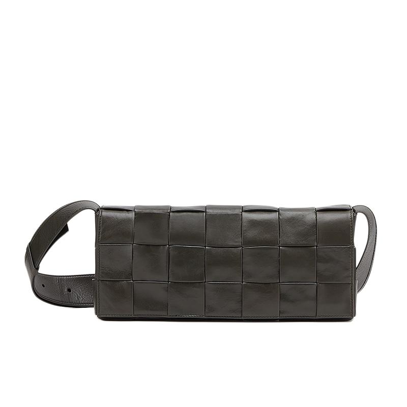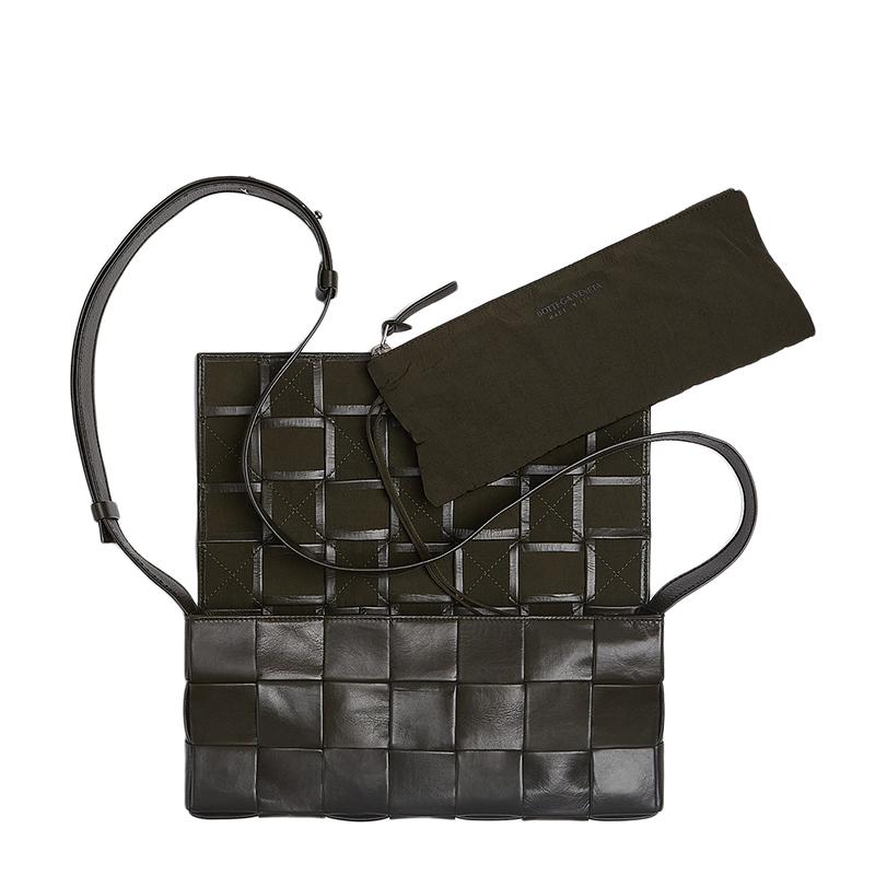 【包稅】Bottega Veneta/葆蝶家經典STRETCH CASSETTE系列男士原野綠色小牛皮編織方形翻蓋斜挎包629068VCQ713203