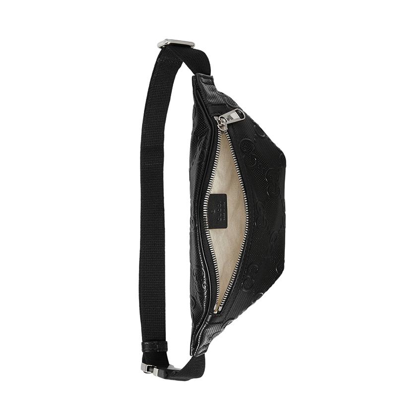 【包税】GUCCI/古驰 21新款GG embossé系列 男女同款黑色双G压纹皮革斜挎包腰包6585821W3CN1000