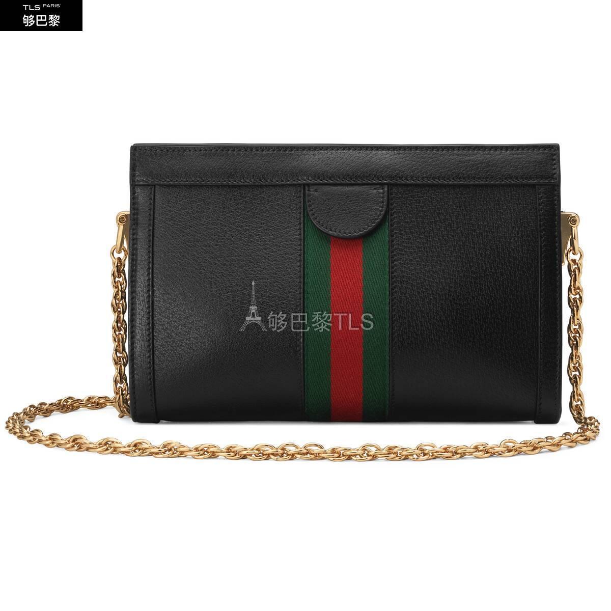 2019早秋系列再添力作,推出全新小号链式Ophidia系列肩背包,选用黑色皮革材质,搭配镶嵌的红绿条纹织带细节。新款设计的正面饰片上饰有小巧玲珑的双G细节,灵感源自70年代Gucci典藏腰带搭扣设计,经现代美学演绎后演化成高贵小巧的样式,打造备受青睐的造型。