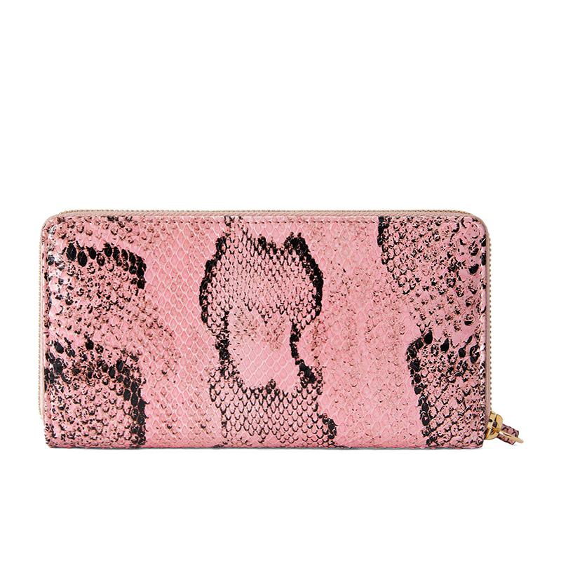 GG Marmont系列采用以珍贵蟒蛇皮设计的拉链钱包丰富。以精致的粉红色调显示,标志性的Double G细节点缀此产品。
