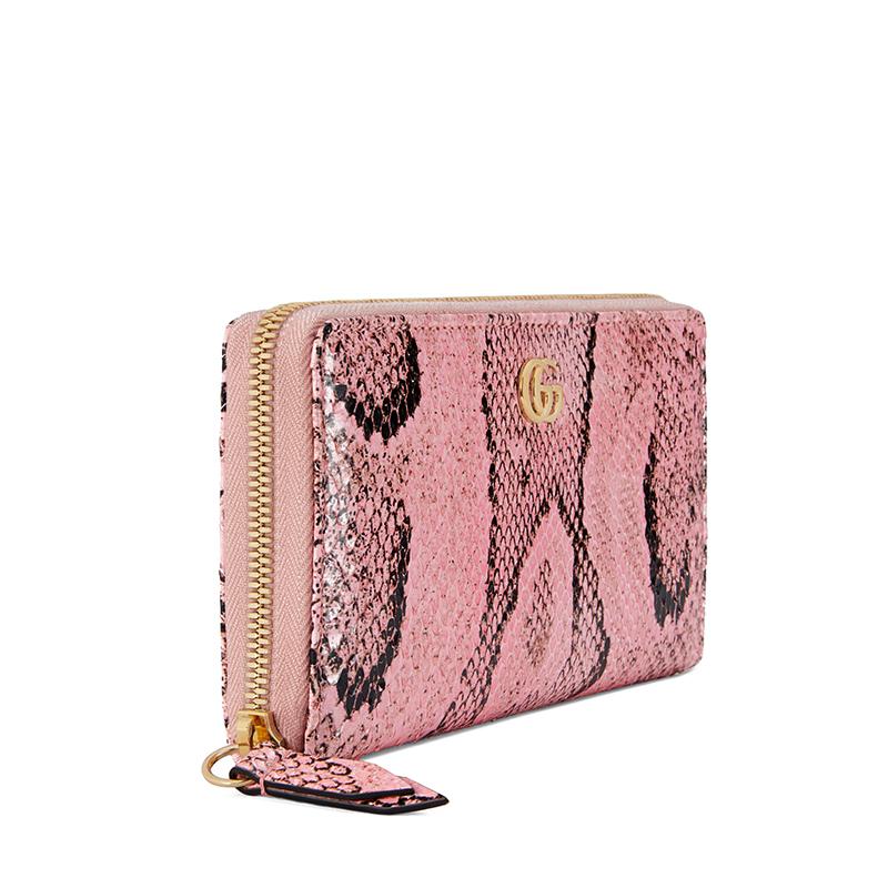【包税】GUCCI/古驰 2021春夏新款 GG Marmont系列 女士粉色蟒蛇皮双G拉链长钱包456117LU3XG5815