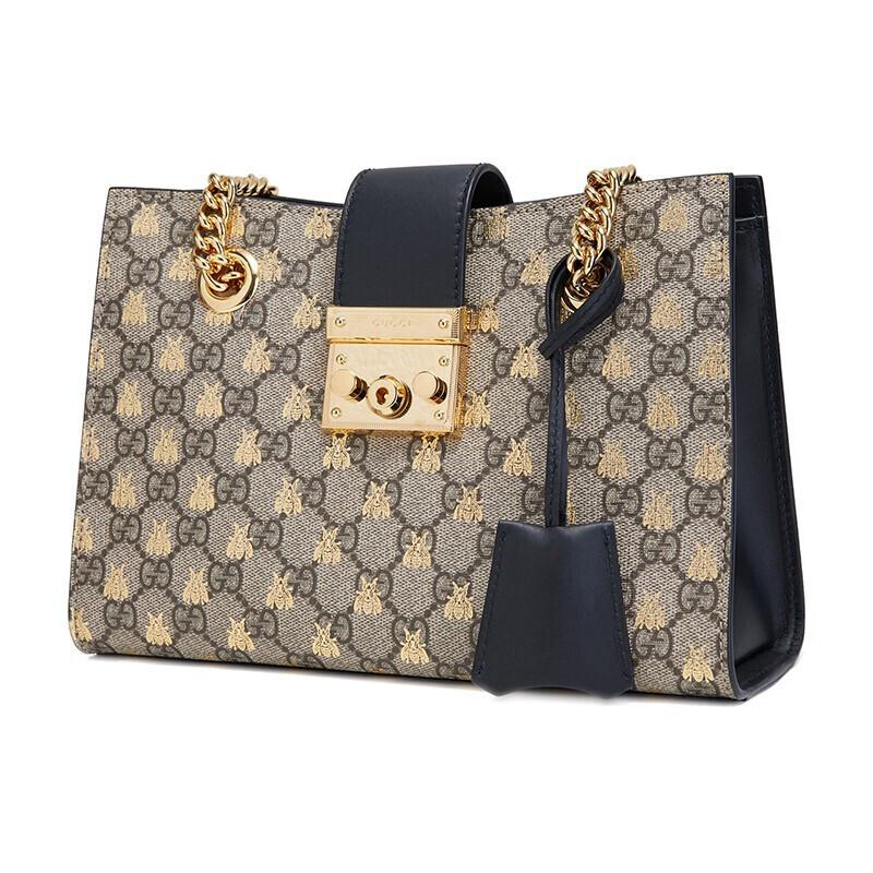 GUCCI/古驰 女包蜜蜂GG压花单肩帆布手提包 498156-9F26G