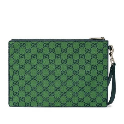 【包稅】GUCCI/古馳2021春夏新款Pochette GG Multicolor系列男女同款綠色和藍色GG帆布GG鑽石圖案手拿包‎6575812UZAN3368