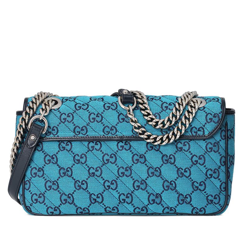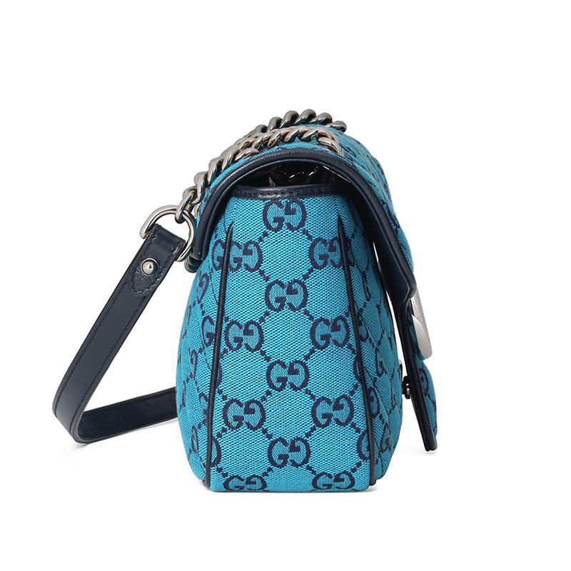 【包稅】GUCCI/古馳2021春夏新款GG Marmont‎系列小號女士淺藍色和藍色GG帆布銀色飾面雙G扣斜挎單肩手提包4434972UZCN4164