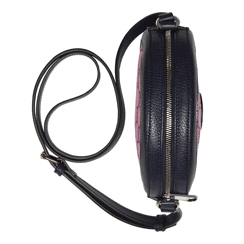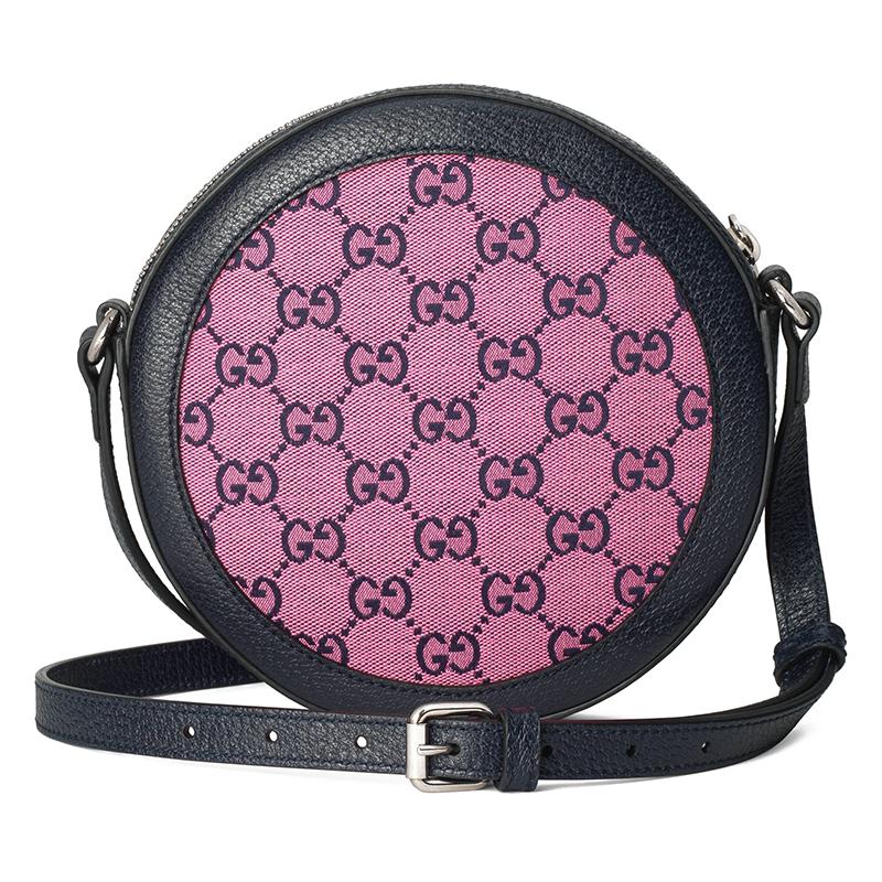 【包稅】GUCCI/古馳2021春夏新款GG Multicolor系列女士粉色和藍色GG帆布可調節肩帶圓形單肩包6588252UZAN5279