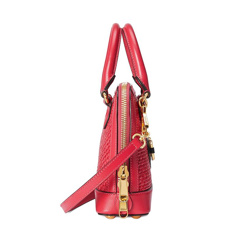 这款迷你手袋采用稻草效果织物和柔软的珊瑚色制成,在一系列具有稻草效果的质感材料中营造出活力的色调,为现代优雅注入了新的定义,贯穿Gucci Horsebit 1955系列。