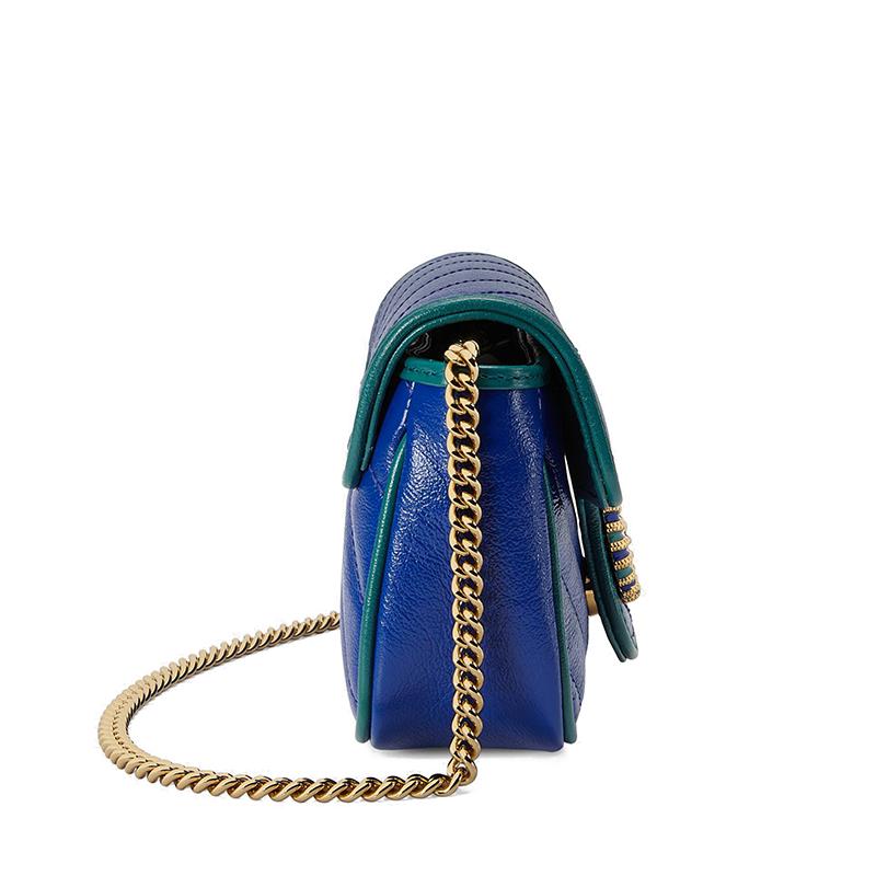 首頁 > 腕表 > 古馳 > 【包稅】GUCCI/古馳2021春夏新款GG Marmont系列女士超迷你藍色和綠松石皮革翻蓋珐琅雙G單肩斜挎手提包5749691X5EG8382