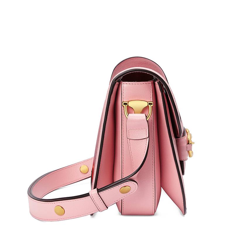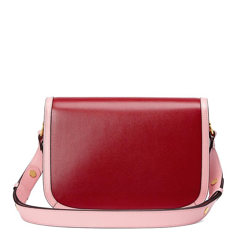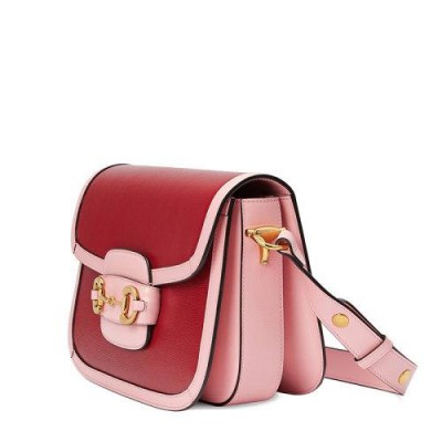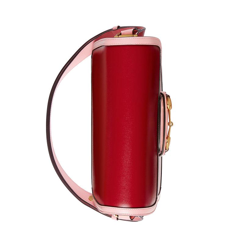 【包税】GUCCI/古驰 2021春夏新款 Horsebit 1955系列 女士小号红色和粉色皮革马衔扣单肩斜挎手提包‎6022041DBAG6668