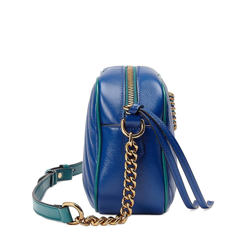 • 【包税】GUCCI/古驰 2021春夏新款 GG Marmont系列 女士小号蓝色和翠绿色皮革拉链珐琅双G单肩斜挎手提包4476321X5EG8382