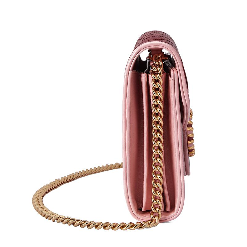 【包稅】GUCCI/古馳2021春夏新款GG Marmont系列女士紅色和粉色皮革雙G鏈式錢包5738071X5EG6476