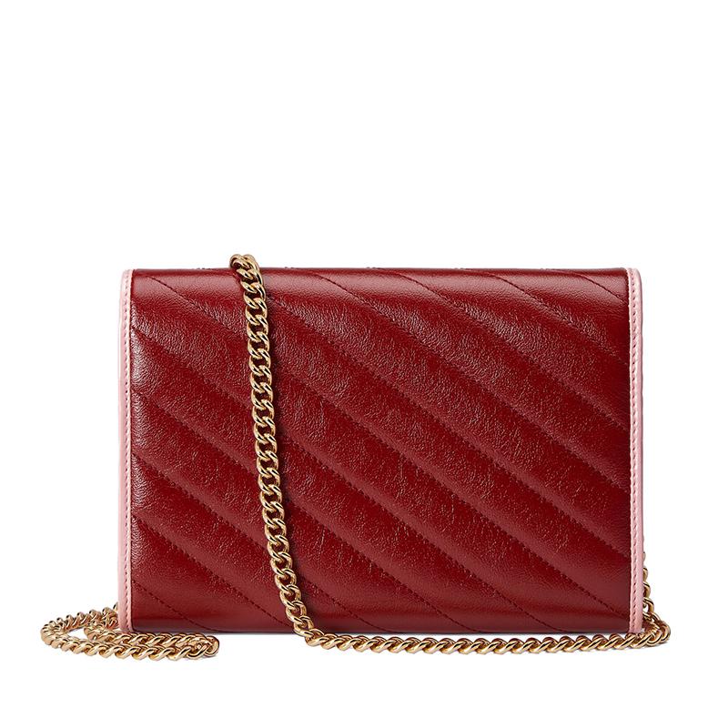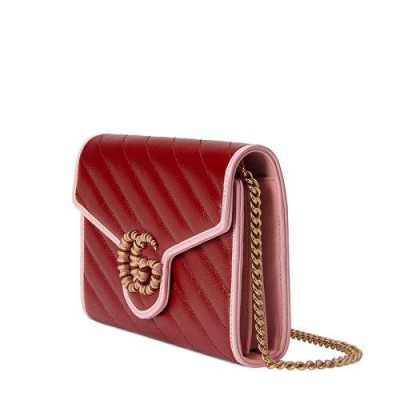 【包税】GUCCI/古驰 2021春夏新款 GG Marmont系列 女士红色和粉色皮革双G链式钱包5738071X5EG6476