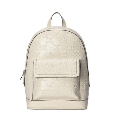 【包稅】GUCCI/古馳21新款GG embossé系列男女同款白色雙G壓紋皮革背包雙肩包6585791W3BN9099