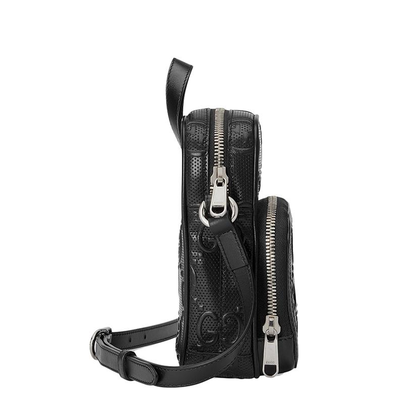 这款迷你包采用Opening系列新亮相的GG图案进行了全新诠释。GG皮革以其柔韧性和略带光泽的外观而著称。它具有质感,在黑色穿孔皮革底上凸显了Maison品牌的浮雕符号。