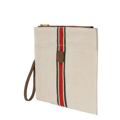 【包税】GUCCI/古驰 21春夏新款 男士米色亚麻红绿条纹GG皮革标志拉链手拿包6575922U2AG8686