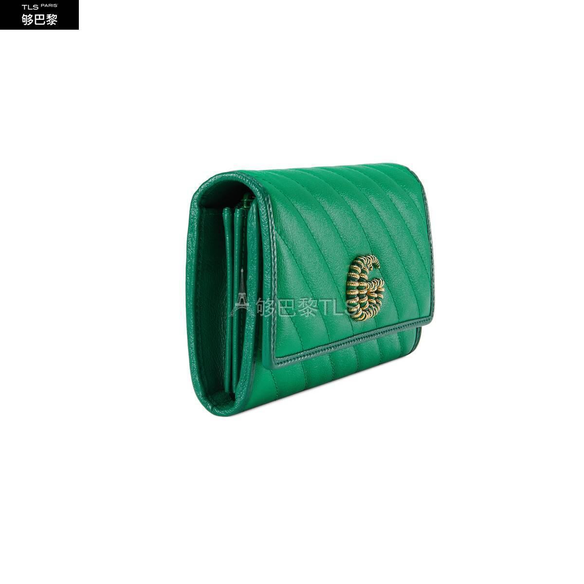 这款GGMarmont系列钱包采用绿色调绗缝皮革制作。饰有珐琅细节的标志性双G配件令整款设计更添魅力。