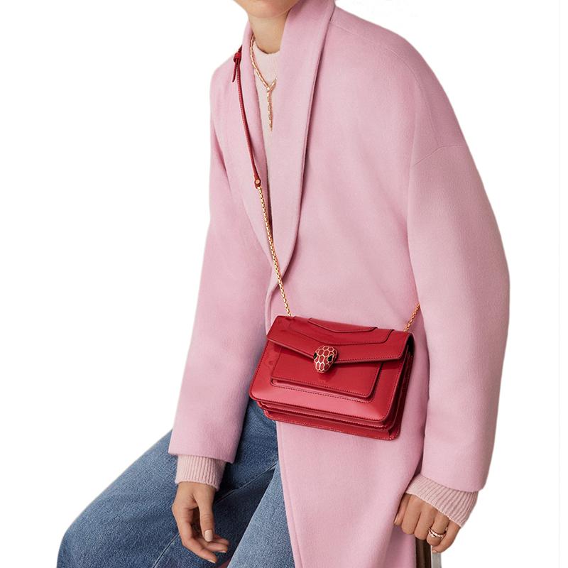 【包稅】BVLGARI/寶格麗2021春夏中國農曆新年特別款SERPENTI FOREVER系列女士小號紅色小牛皮金色黃銅啞光珐琅黑瑪瑙單肩斜挎包290532