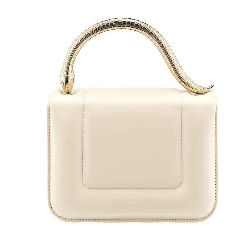 【包稅】預售一個月BVLGARI/寶格麗MARY KATRANTZOU聯名靈蛇蛻變女士白色柔軟納帕皮Serpenti金色黃銅錶扣水晶蛇頭單肩斜挎手提包291074