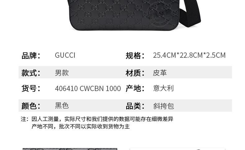 【爆款主推現貨】古馳(GUCCI)男包男士經典雙G壓花塗層帆布單肩包男士斜挎包406410 CWCBN 1000