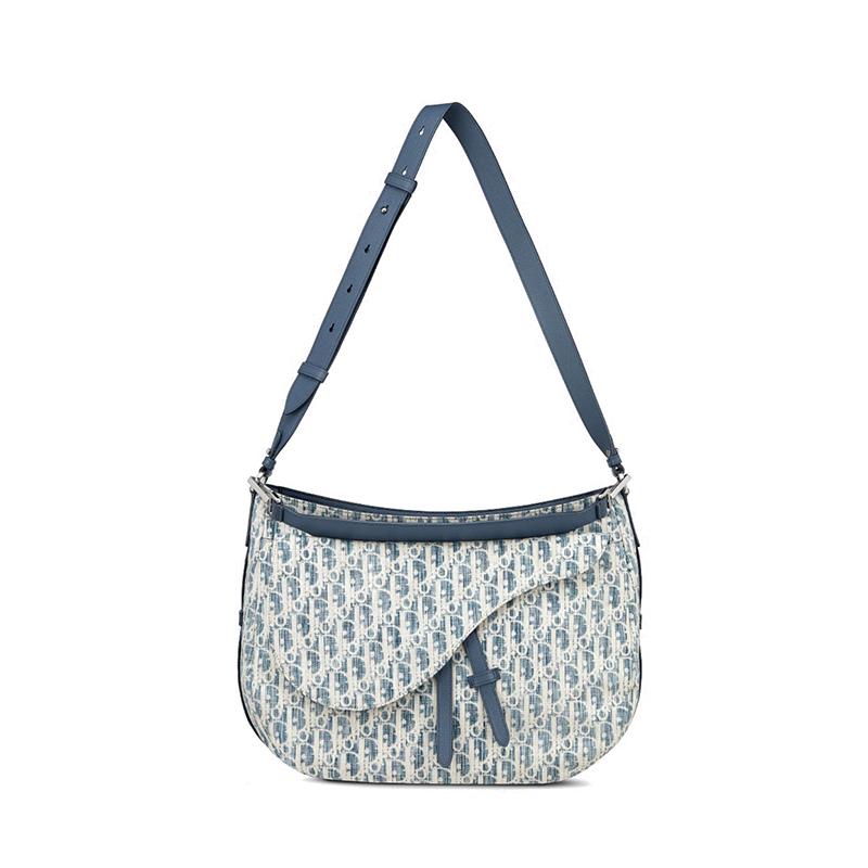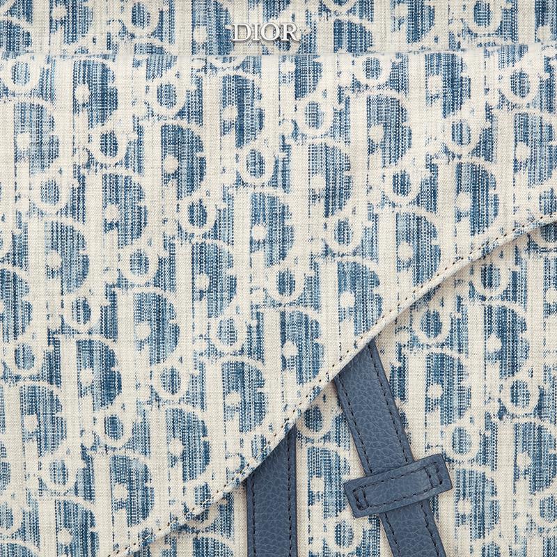 【包稅】DIOR/迪奧2021春夏新款SADDLE SOFT系列男士藍色Dior斜紋Kasuri提花帆布可調節肩帶手提斜挎包1ADHO022UTK_H00E