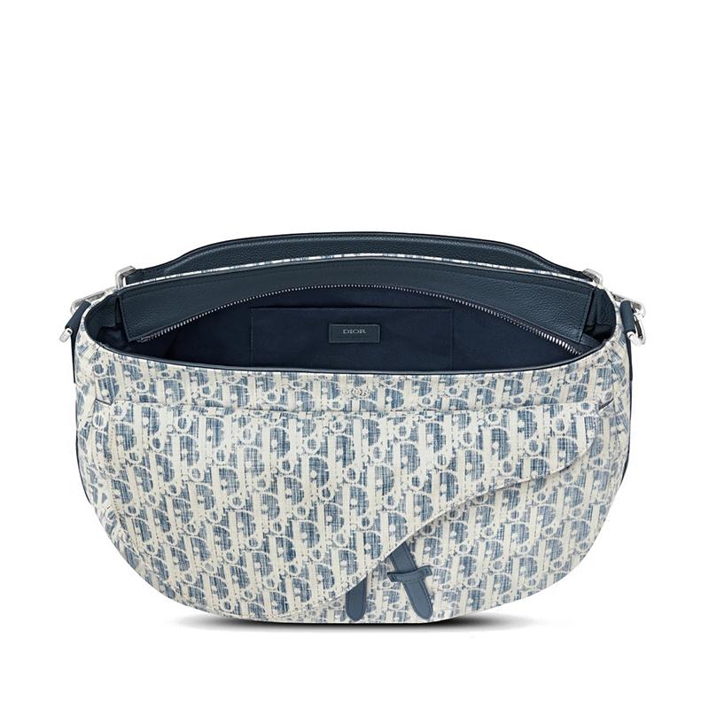 【包税】DIOR/迪奥 2021春夏新款 SADDLE SOFT系列 男士蓝色Dior斜纹Kasuri提花帆布可调节肩带手提斜挎包1ADHO022UTK_H00E