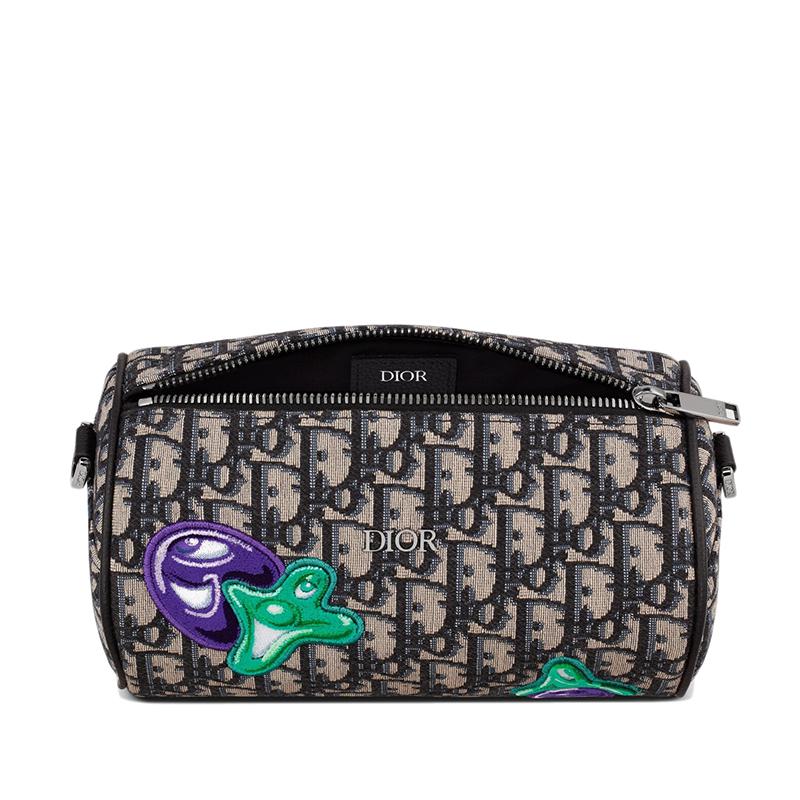 【包税】DIOR/迪奥 21秋冬新款ROLLER系列 男士米色黑色老花帆布KENNY SCHARF联名图案印花斜挎单肩滚筒包1ESPO061UAU_H10E
